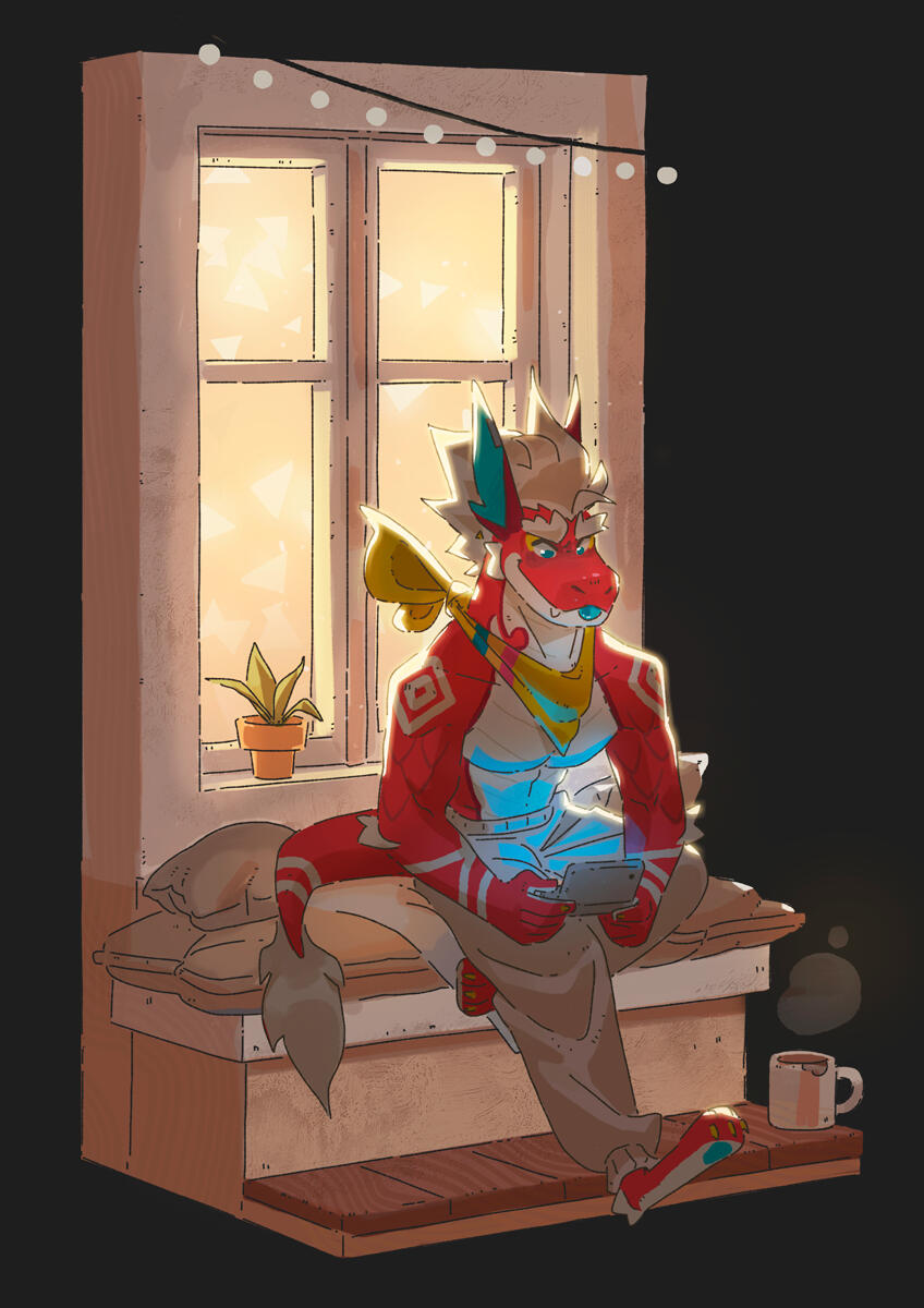 ThumbnailsI usually send 3 to 4 options based on commission description and any conversation i had with the commissioner. Depending of the of client's budget range i can make options with different complexities with their prices for each.SketchingHere I refine the thumbnail idea, always trying to push and improve the pose, proportions, shapes, etc.Lines & ColorsAfter fixing any mistake and applying changes requested , i start to polishing and add the base colors and lines.RenderingI apply a simple render and texture bringing the mood with light/shadows.